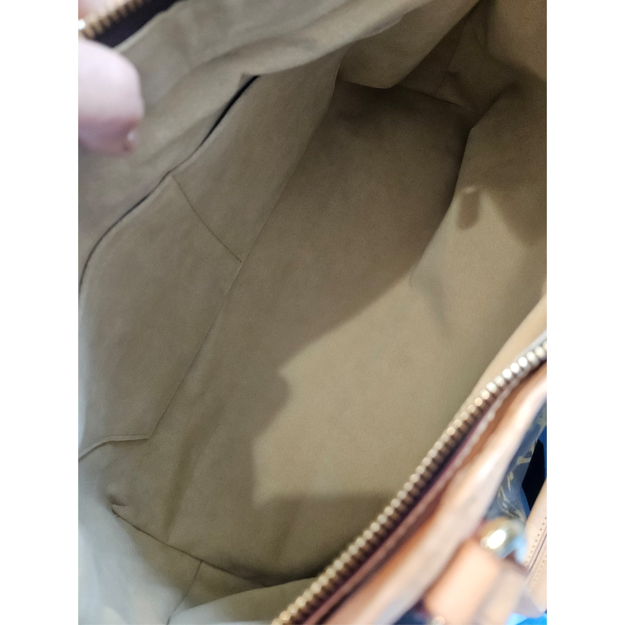 Outside:patina on the vachetta/watermark on the vachetta. nothing significant